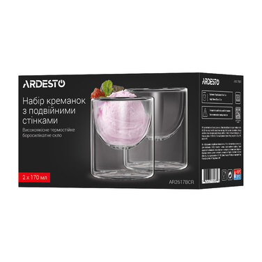 Опис Набір креманок з подвійними стінками Ardesto, 170мл, 2шт, боросилікатне скло, прозорий